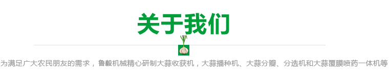 為滿足廣大農民朋友的需求,魯毅機械精心研制大蒜收獲機,大蒜播種機、大蒜分瓣、分選機和大蒜覆膜噴藥一體機等適合農業的多種農機具,操作簡單,種植、收獲速度快,提高了農作物種植收獲的效率,受到客戶的一致好評。